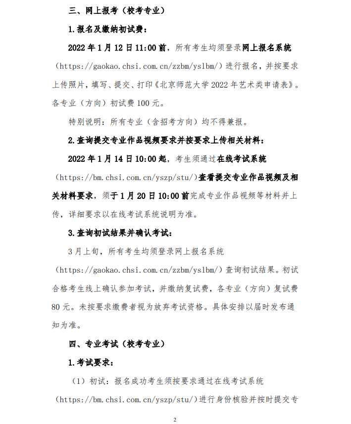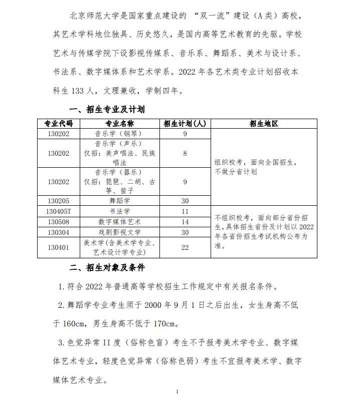 北京师范大学2022年艺术类本科招生简章